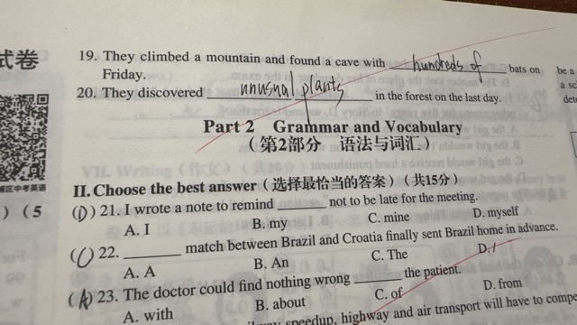 刷题经验:八年级做了两本专项(完形填空、语法词汇)